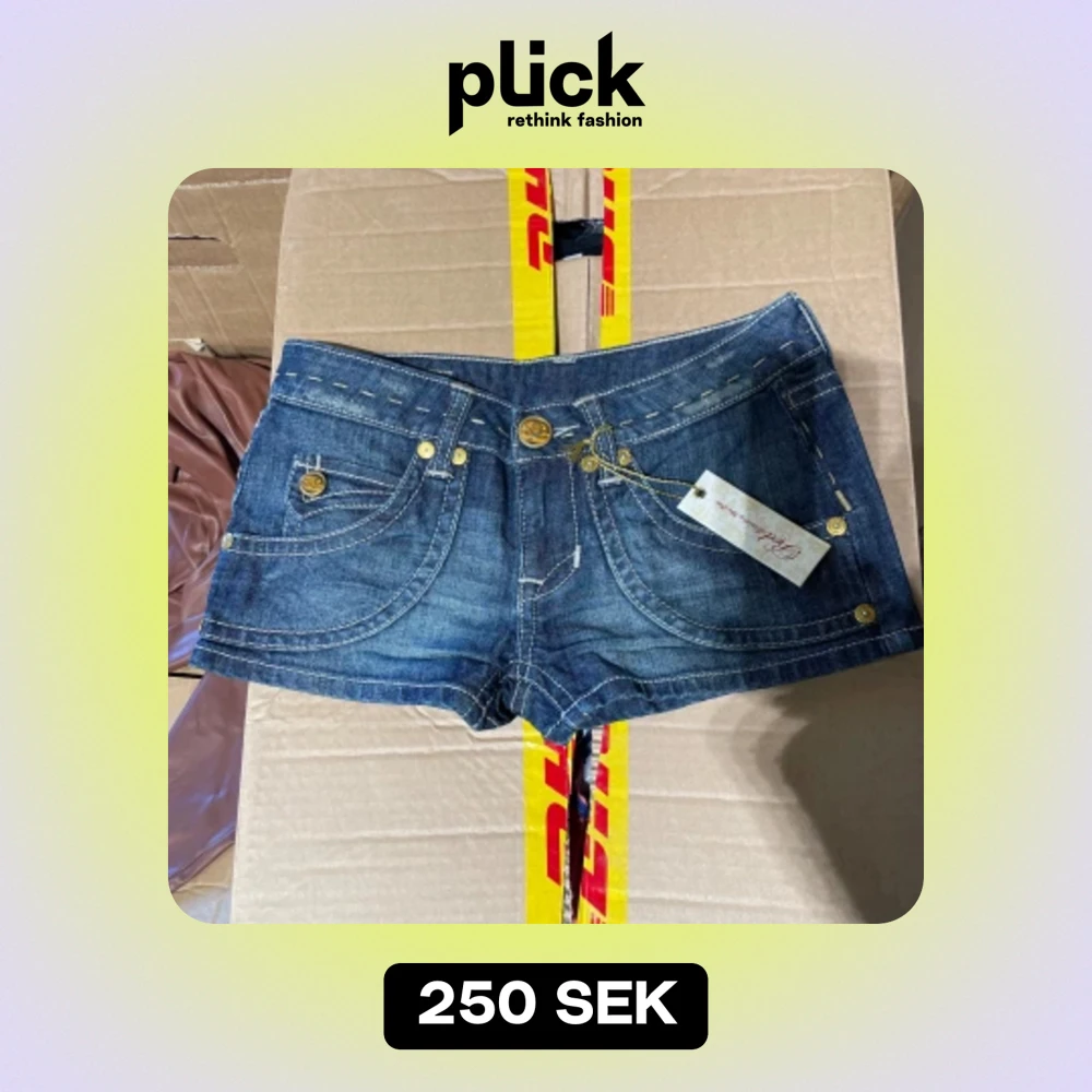 Säljer dom här helt nya jeans shortsen då dom är förstora för mig nypris 539kr Dom har guld detaljer och är i storlek 27 Dom är även lågmidjade