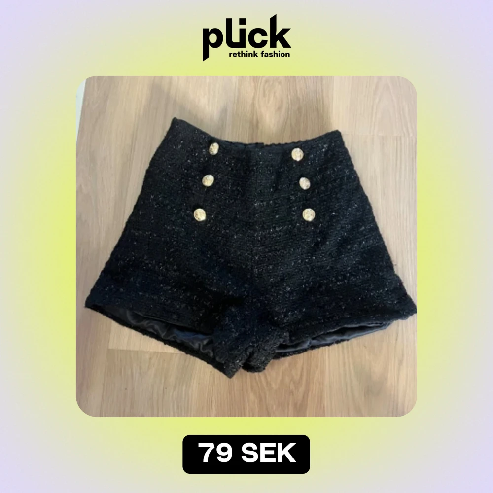 Snygg högmidjade shorts med guld detaljer. Dragkedja i sidan. Storlek S.