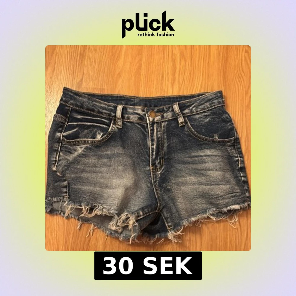 Jag köpte dom på vinted men var för små för mig. Snygga mörkblå jeansshorts med slitna detaljer och fransig kant nertill. Klassisk femficksmodell med broderade bakfickor och knappgylf. Perfekta för sommaren och ger en cool, avslappnad look.