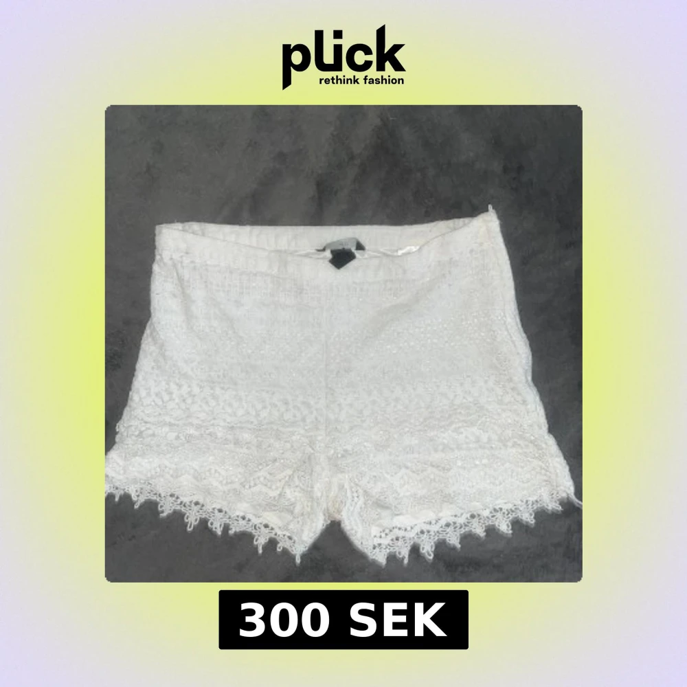 Säljer ett par vita spetsshorts från hm. Knappt använda och därför i mycket bra skick. Tvätta och stryks innan jag skickar dem🥰