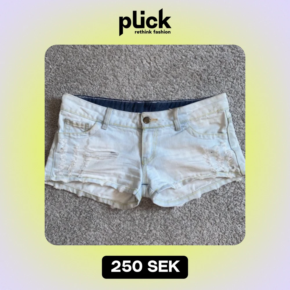 Supersnygga lågmidjade jeansshorts med slitningar🤩Midjemått 41 cm💕 Superbra skick, säljs för tyvärr lite stora på mig❤️Storlek står ej men skulle gissa på S/M💓