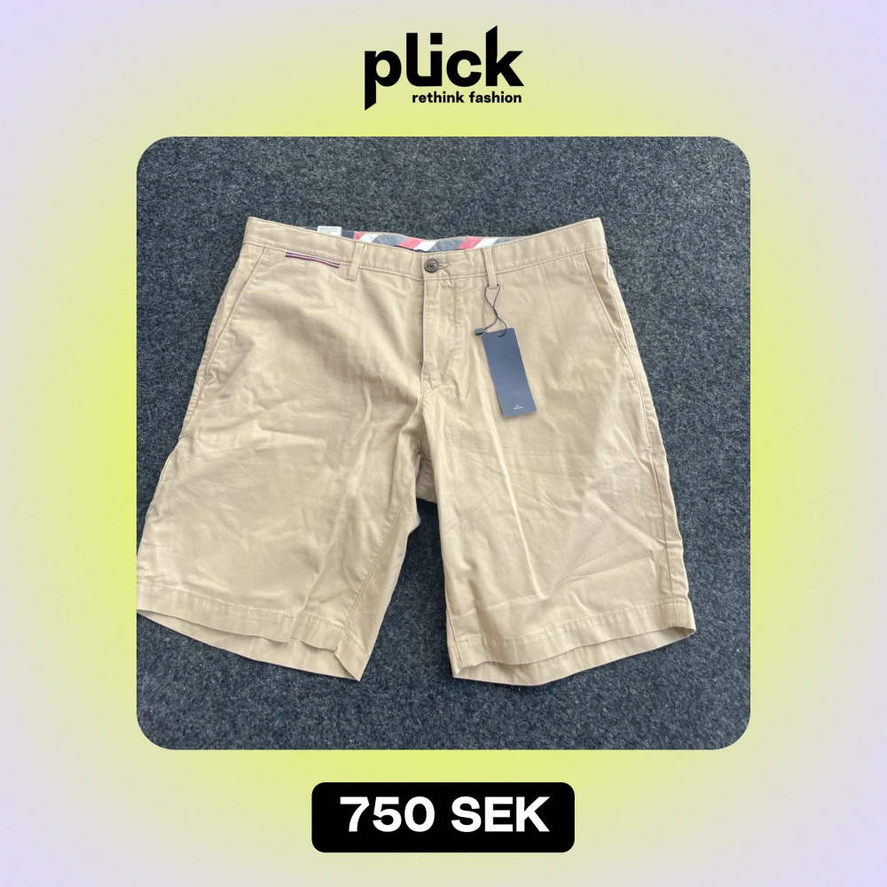 Säljer ett par snygga beige shorts från Tommy Hilfiger i nytt skick. De har en klassisk design med knappar och dragkedja framtill. Tillhörande knappar finns med! Storlek W34 Ny pris är ungefär 900-999kr💕