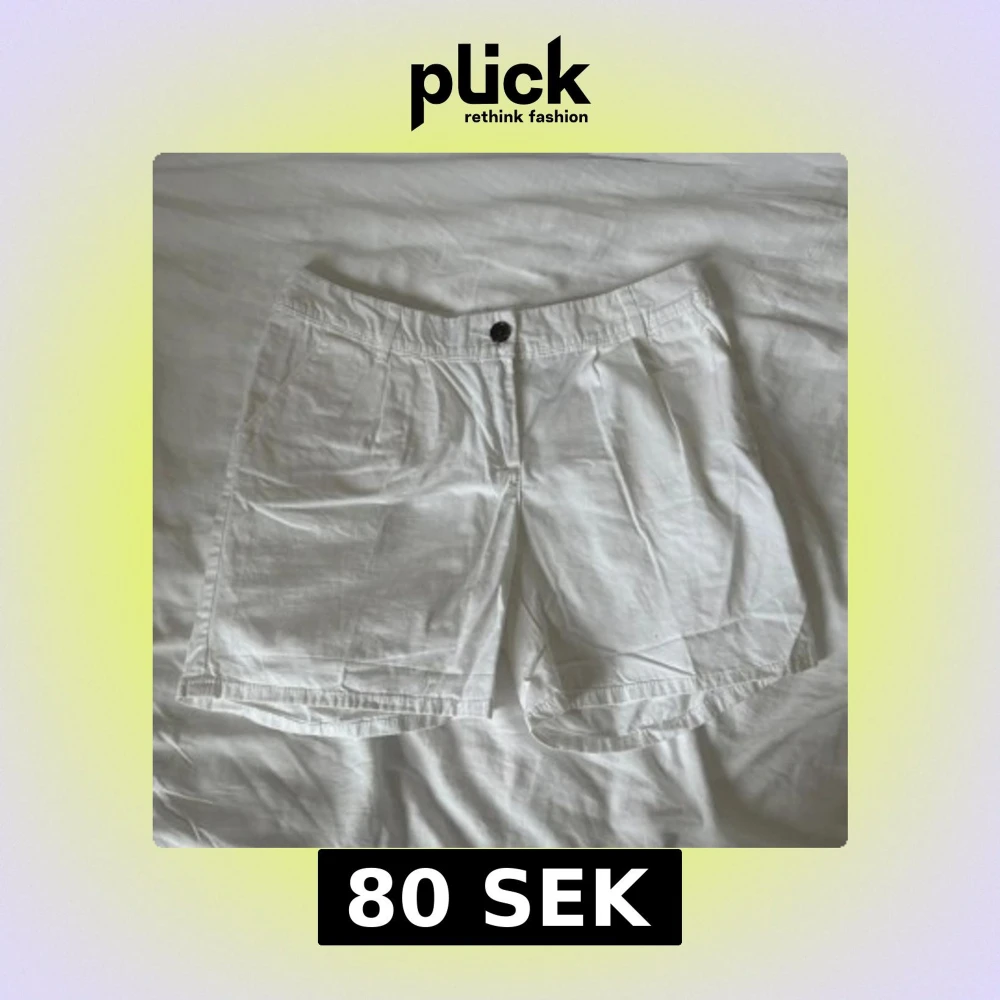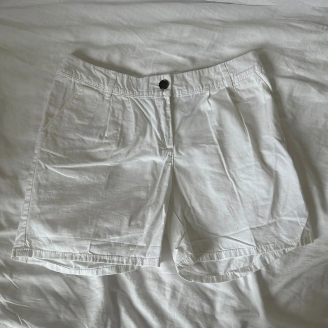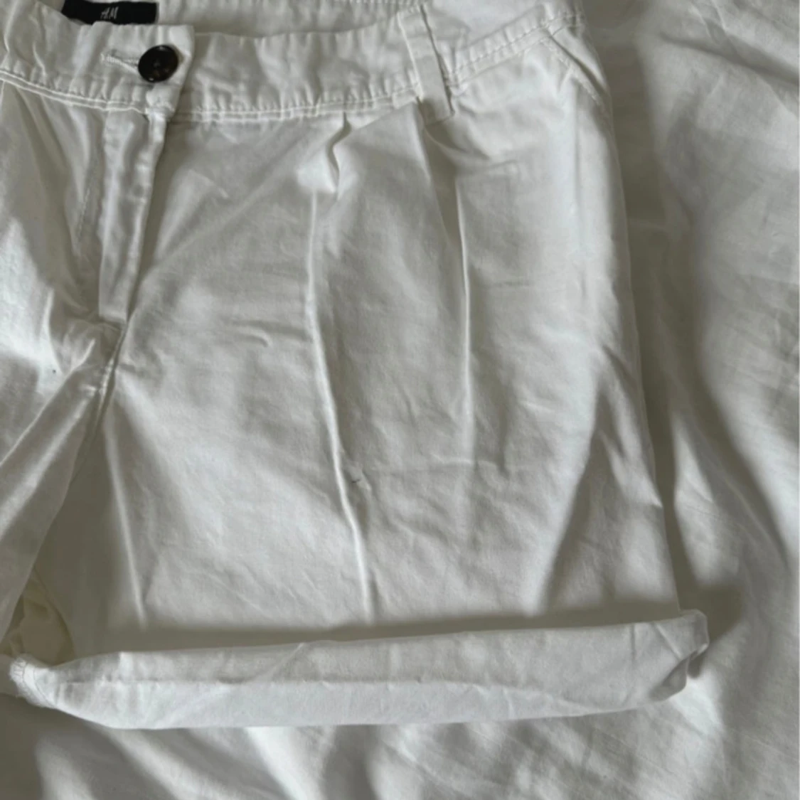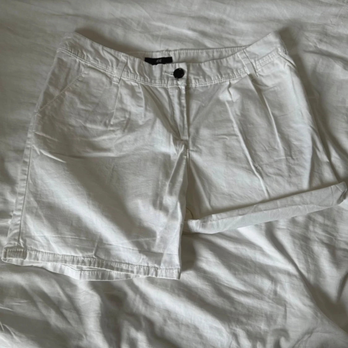 Vita shorts från H&M i bomull med klassisk passform och normal midja. De har fickor på sidorna, knapp och dragkedja framtill samt uppvikta benslut för en clean look. Perfekta för varma dagar och enkel att matcha med allt
