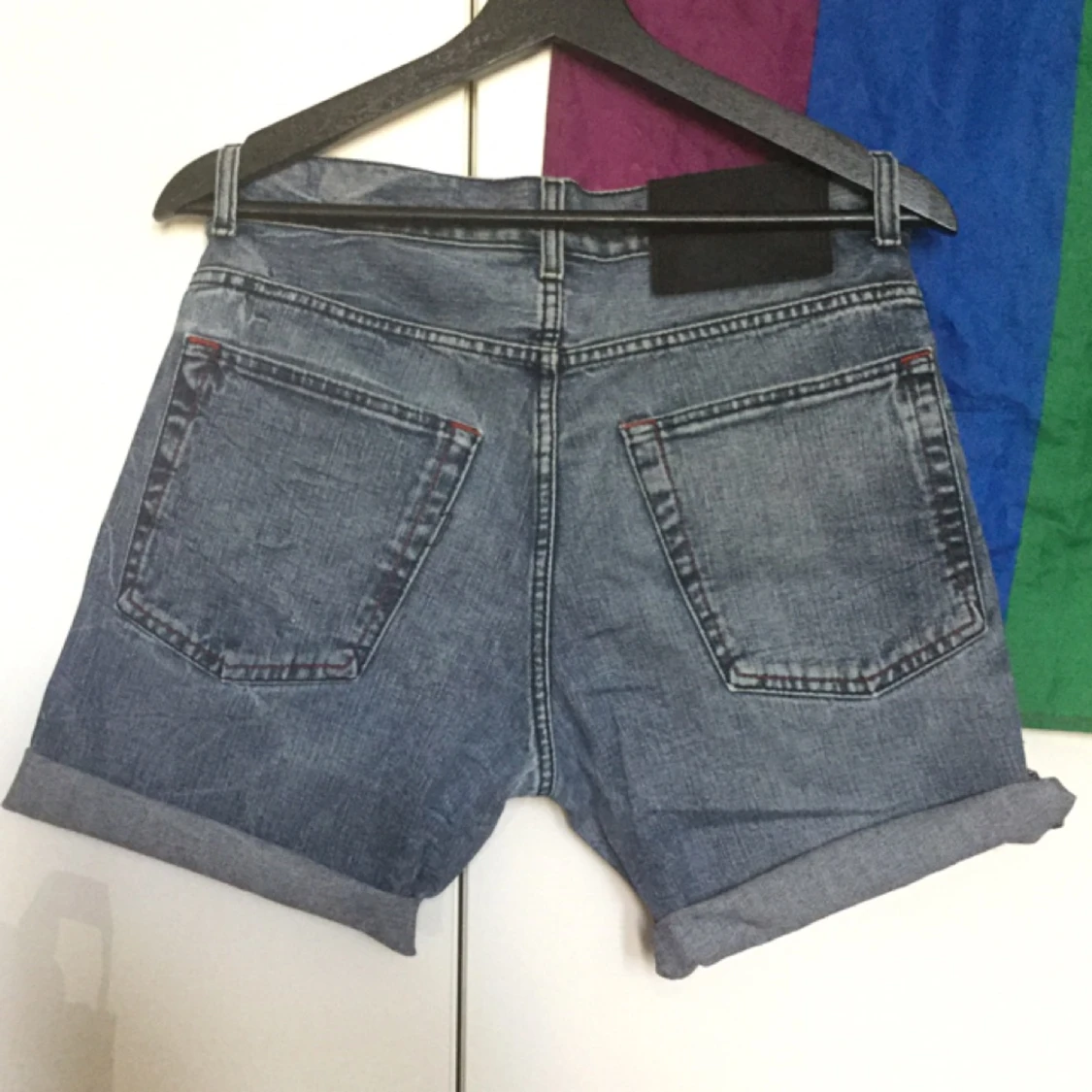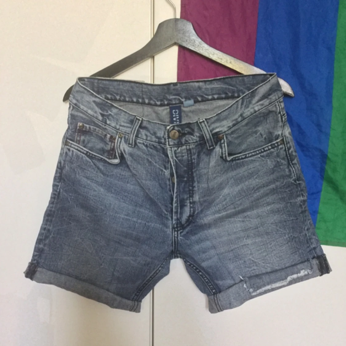 Stentvättade jeansshorts i storlek w32, vilket är cirka storlek 40/38 :).
