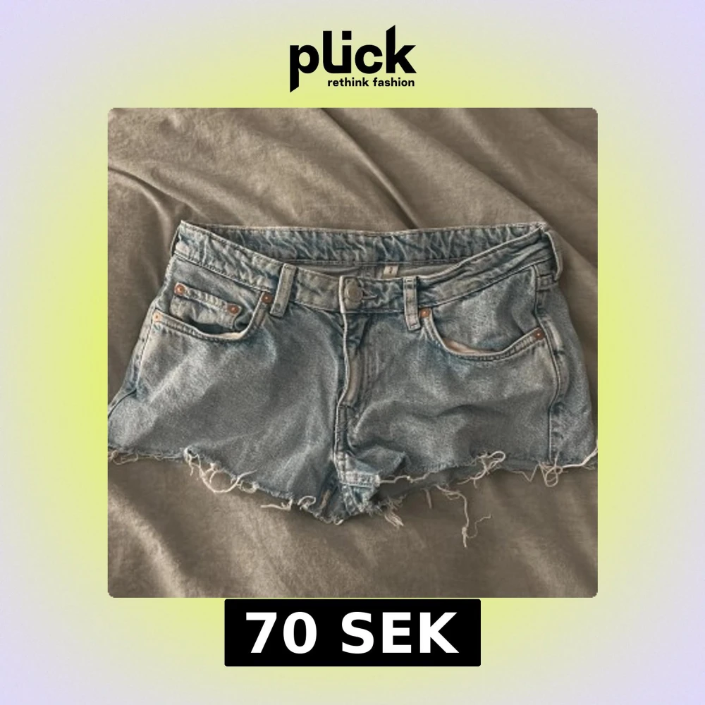 Snygga ljusblå jeansshorts från Weekday. Var från början ett par jeans i modellen ”arrow” som jag klippt till shorts. Är lågmidjade
