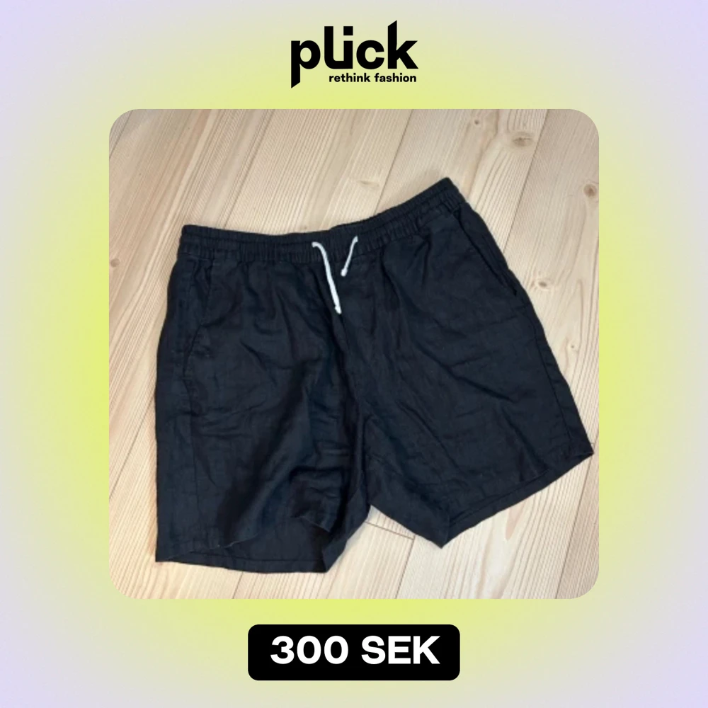 Säljer ett par svarta linneshorts från Weekday i storlek M. De är gjorda av ett bekvämt material och har en elastisk midja med en vit dragsko. använda ett fåtal gånger. pris går att diskuteras