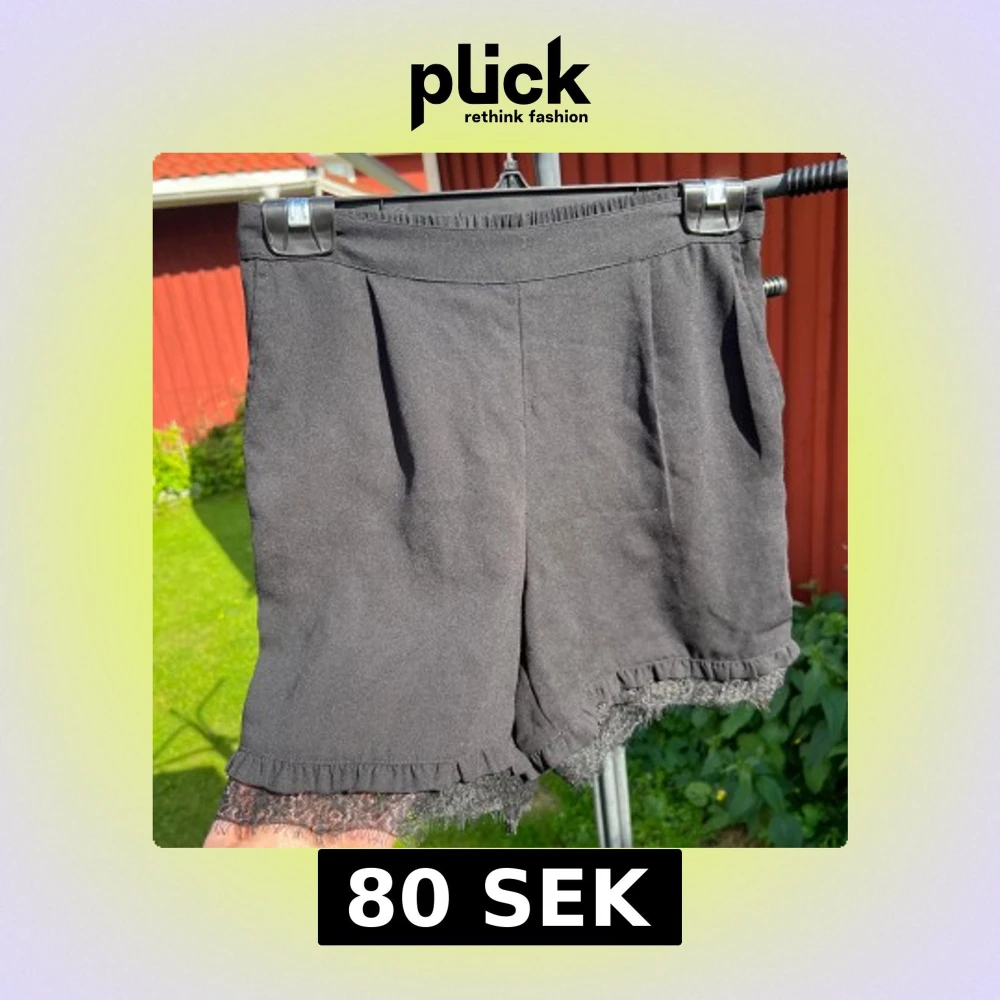 Svarta shorts från Pieces med elastisk midja och volangkant och spetsdetaljer nertill. Iprincip oanvända.