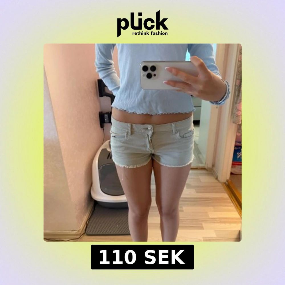 Snygga jeansshorts med låg midja och fransig kant nertill. Klassisk femficksmodell med bälteshällor och knappstängning framtill. Perfekta för varma sommardagar och ger en avslappnad vibe.