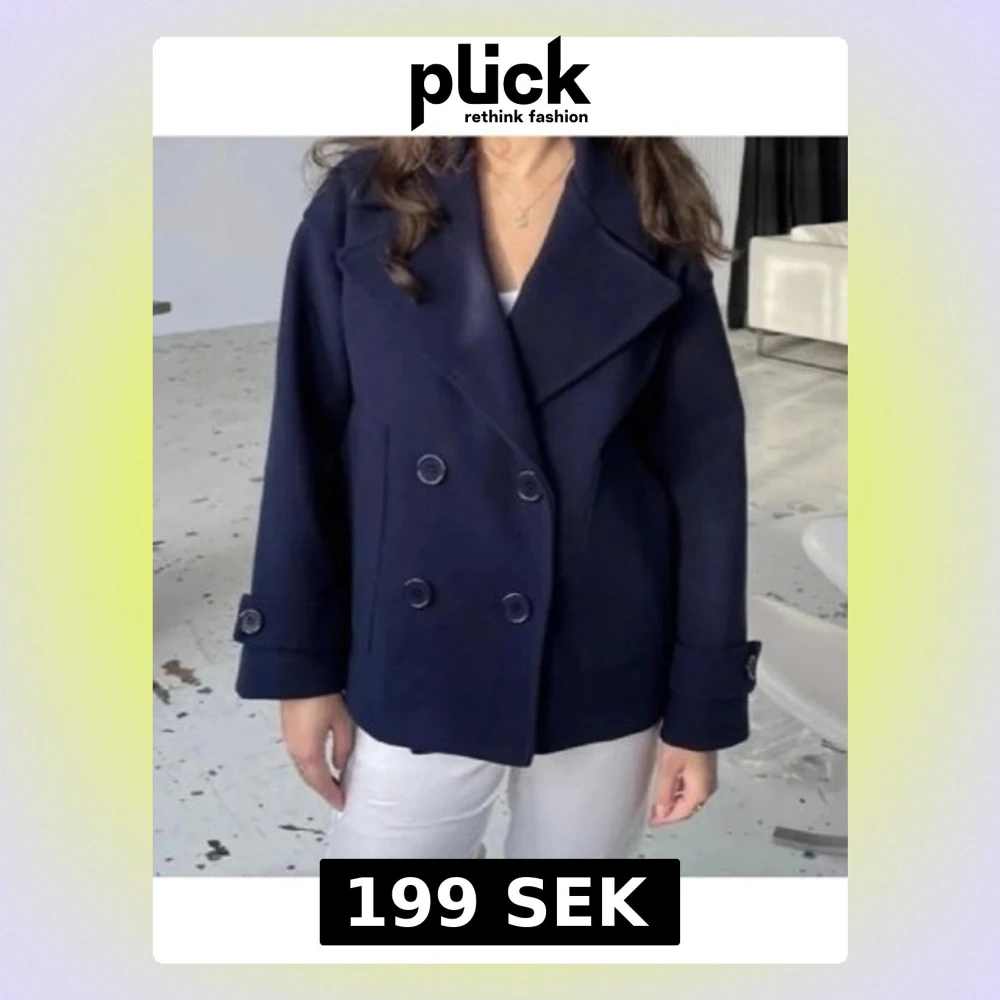 Stilren mörkblå skepparkavaj med bred krage och dubbelknäppning framtill. Jackan har dekorativa knappar på ärmsluten och en rak, något boxig passform. Perfekt för dig som vill ha en klassisk och trendig look.
