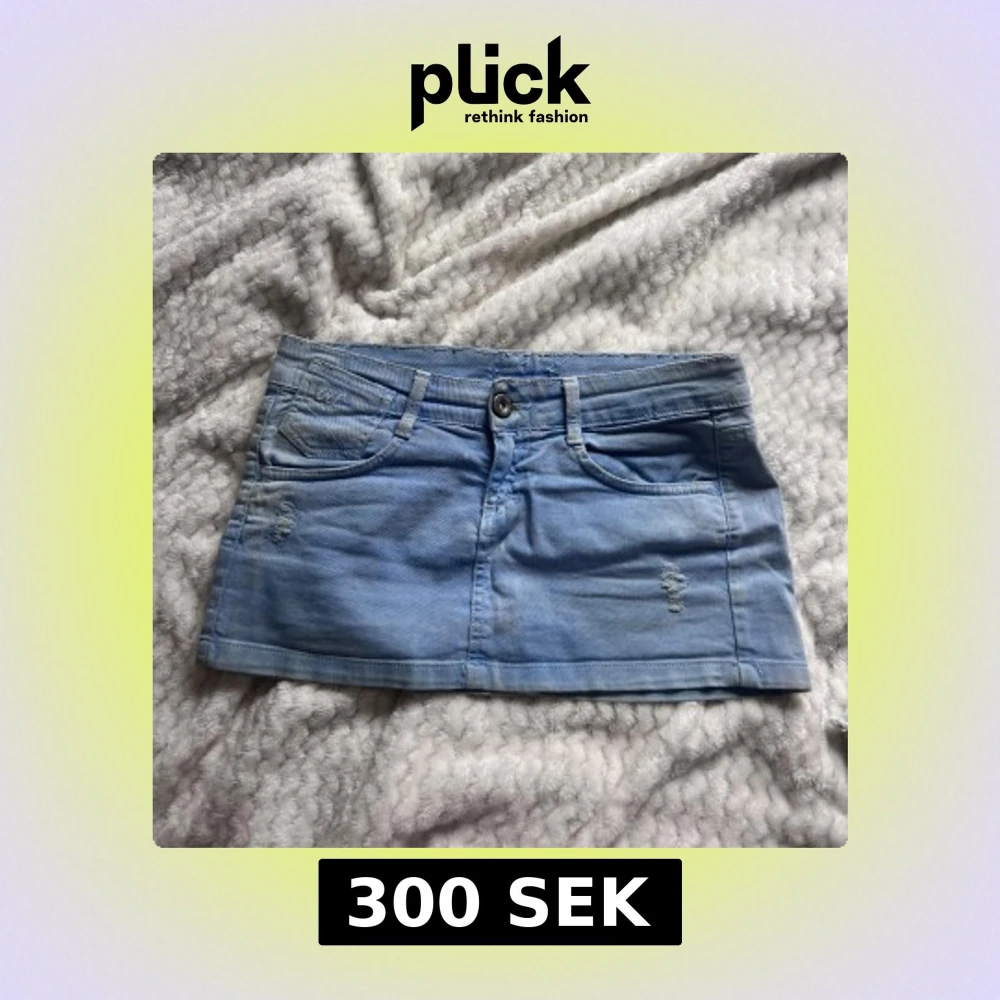 Lågmidjad jeanskjol , finns vissa fläckar men syns inget när man bär den på!