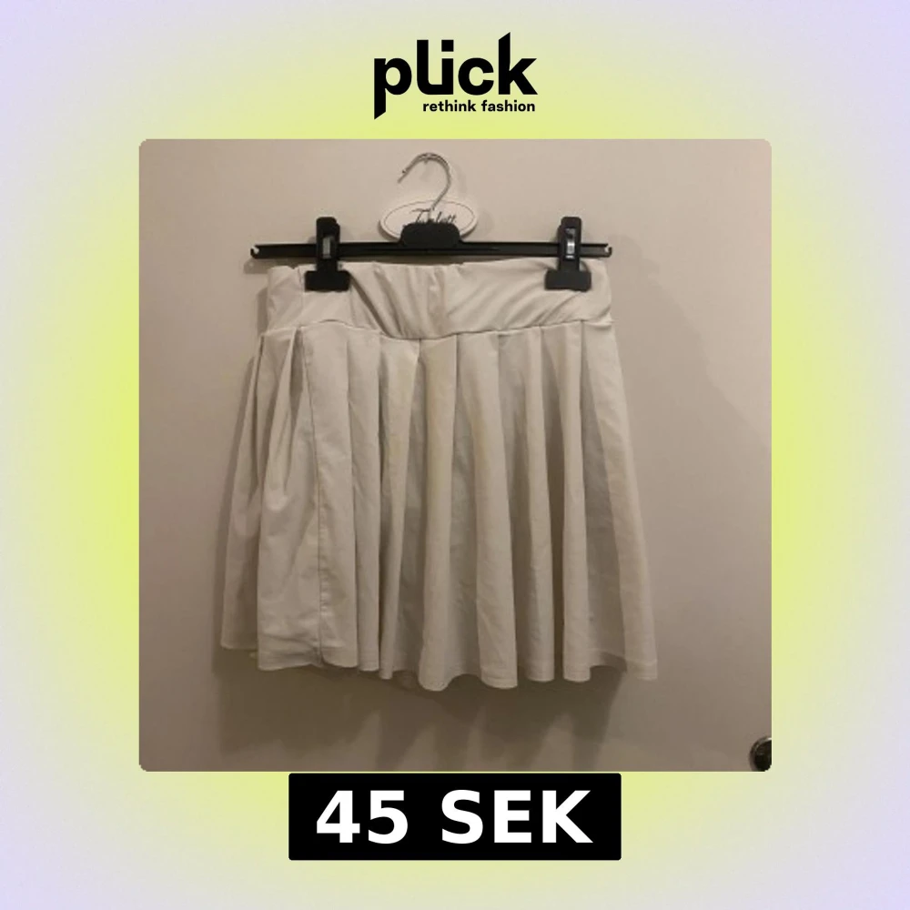 Säljer en vit plisserad kjol från Shein med bred linning och snygga veck. Kjolen är kort och har en flowy känsla, perfekt för dig som gillar en enkel och clean stil. Den har inbyggda shorts. Men de har ett litet hån längst nere vid kjolen Materialet är mjukt och känns lätt mot huden.