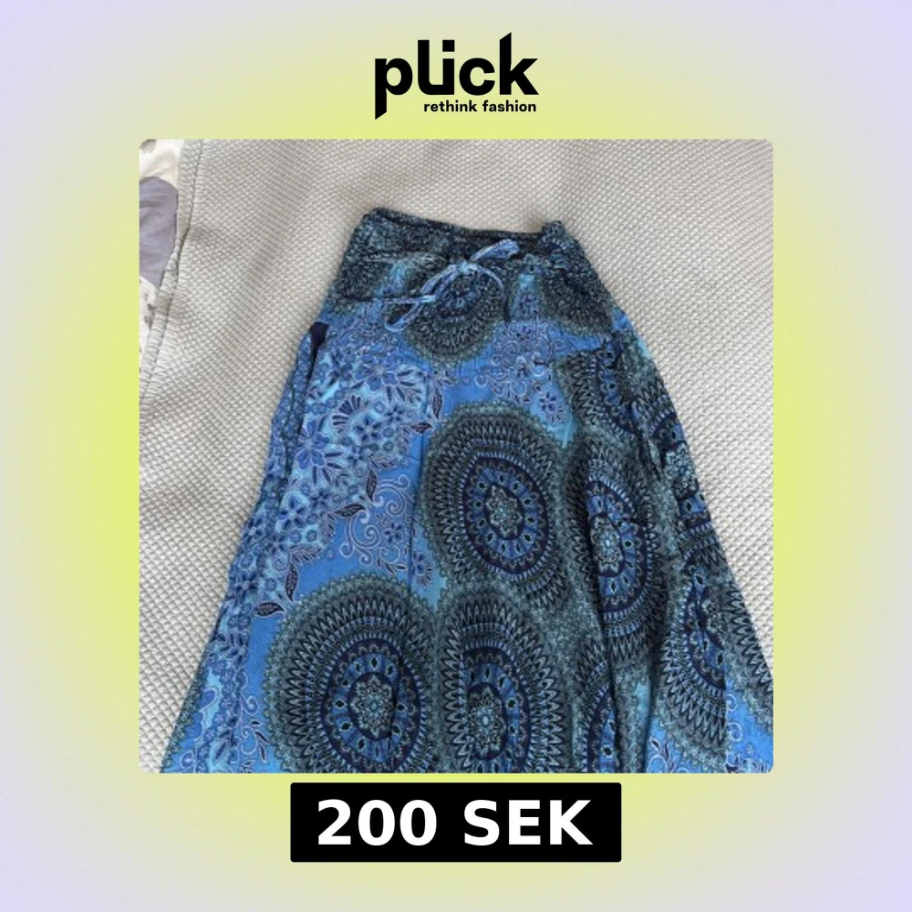 Säljer en blå långklänning med snyggt mandalainspirerat mönster i olika blå nyanser. Klänningen har knyt i midjan och är ärmlös, perfekt för varma dagar. Materialet känns lätt och luftigt.