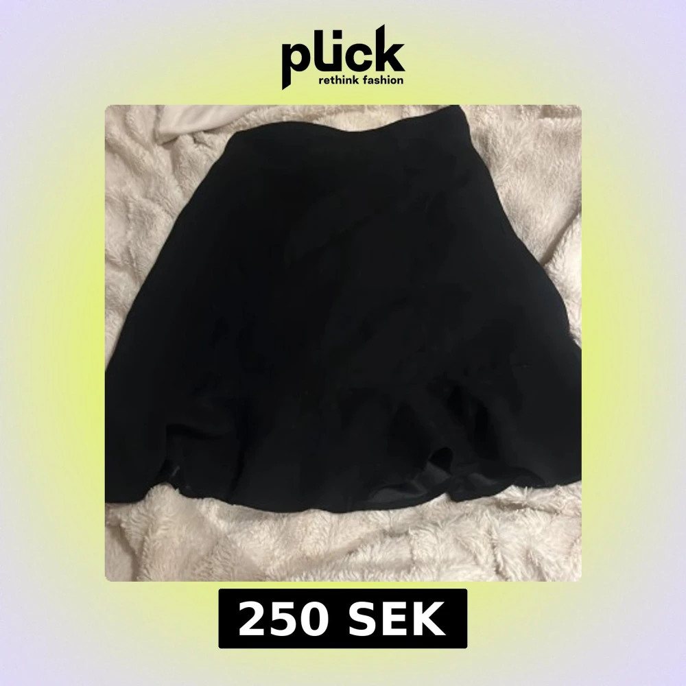 Snygg svart kortkjol med lätt utställd form. Kjolen har en enkel design utan synliga detaljer eller mönster, vilket gör den lätt att matcha med olika toppar. Perfekt för dig som gillar stilrena plagg med lite vidd nedtill.