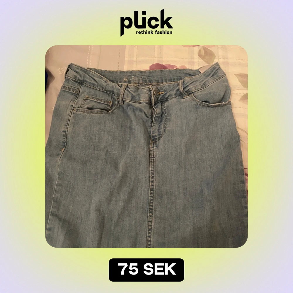 Säljer en snygg jeanskjol i ljus denim. Perfekt för vardagsbruk med en klassisk design och bekväm passform. Kjolen har en dragkedja fram och är i bra skick. Passar perfekt till både sommar och vår!