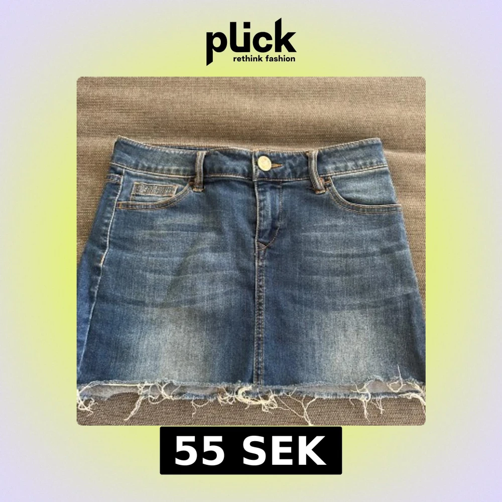Snygg kort jeanskjol från Morgan i klassisk blå denim. Kjolen har fransad nederkant, fem fickor och detaljer på fickorna. Storlek 36 och passar då xs/s!