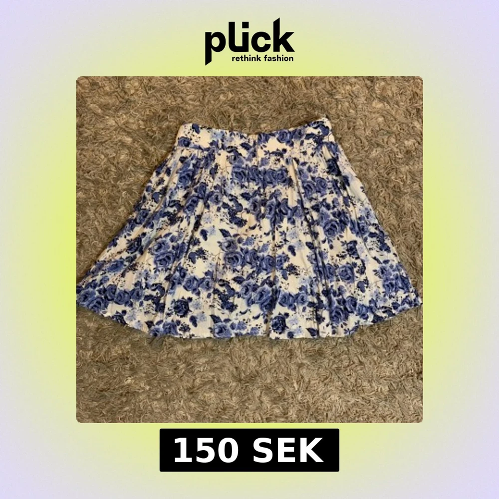Superfin kort kjol med blått blommönster på vit botten. Kjolen har veckade detaljer och en dold dragkedja bak för en snygg passform. Perfekt för dig som gillar romantiska vibes och vill sticka ut lite extra i sommar.