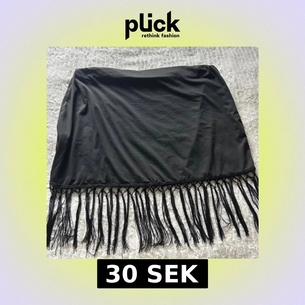 Svart kortkjol med snygga långa fransar längs nederkanten som ger en cool och trendig vibe. Kjolen har en enkel, rak passform och är perfekt för dig som vill sticka ut lite extra. Materialet känns mjukt och följsamt mot huden.