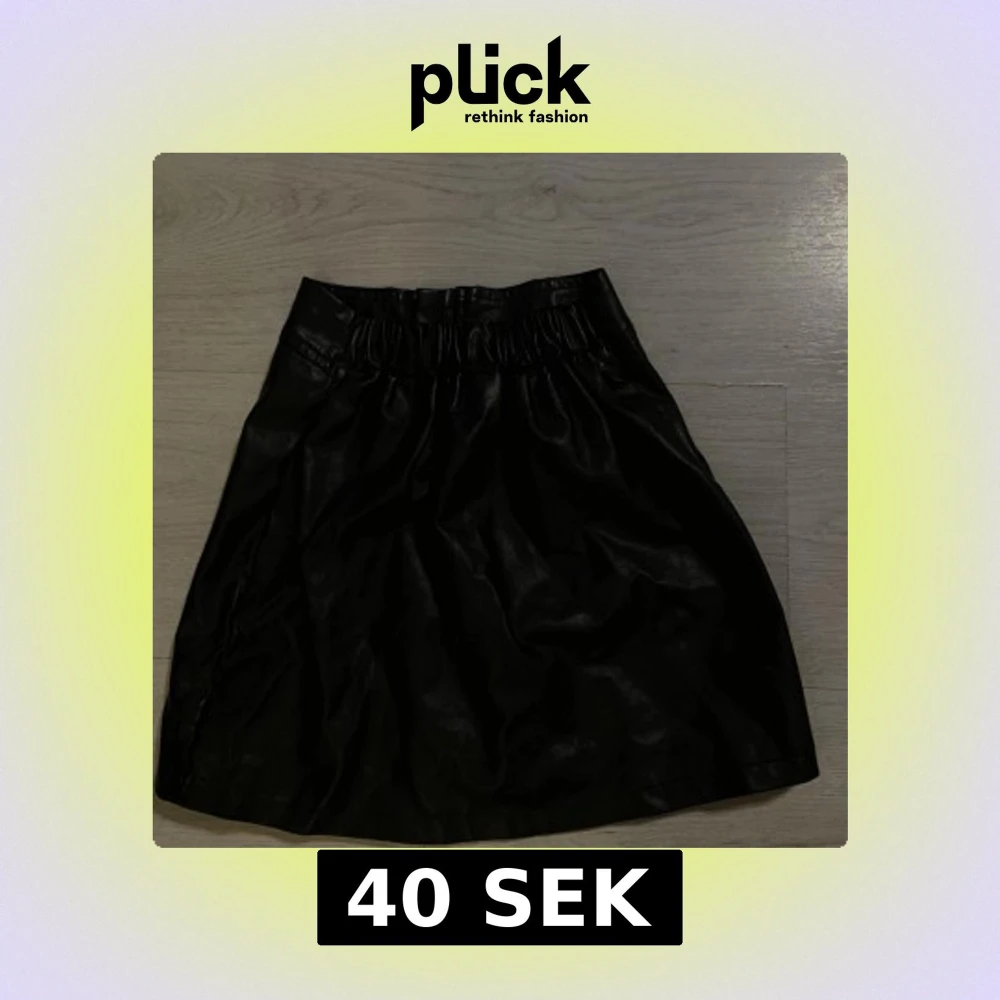 Snygg svart kortkjol i skinnimitation med resår i midjan. Kjolen har en enkel och stilren design som ger en bra vibe till din outfit. Perfekt att matcha med en vit tröja. Storlek 6Y/ 6 åringar