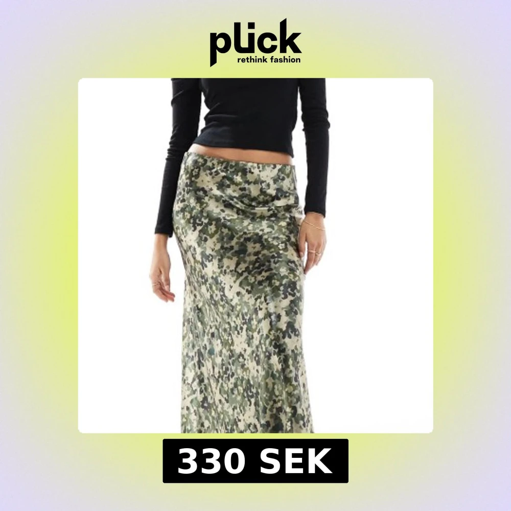 Säljer en långkjol med camouflageblommigt-mönster i gröna och beige toner. Kjolen har en slät, glansig satinfinish och en rak, något lös passform. Aldrig använd och helt ny men returperioden passerade så får sälja här istället :)