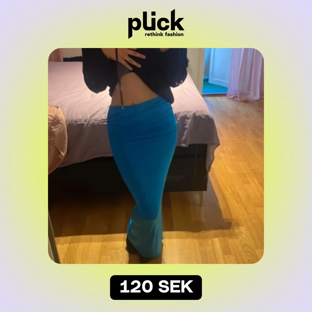 super snygg glittrig blå maxi kjol från gina tricot. Köpt för cirka 300kr och aldrig använd!! Väldigt stretchigt material och hade lätt passat en 32, 34 och 36.