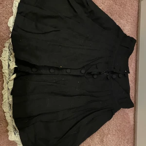 Kjol köpt secon hand o sthlm. Väldigt hög midja med knappar hela vägen och spets samt underkjol. Går till ungefär mitten av låren.