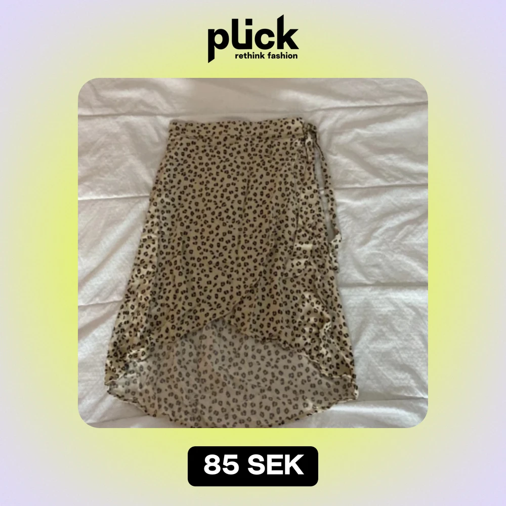 Säljer en superfin leopardmönstrad kjol från KappAhl. Kjolen har en omlott-design med knytband i midjan, vilket ger en snygg och justerbar passform. Den är i en beige färg med svarta leopardfläckar, perfekt för både vardag och fest. Materialet känns lätt och luftigt, vilket gör den idealisk för varmare dagar.