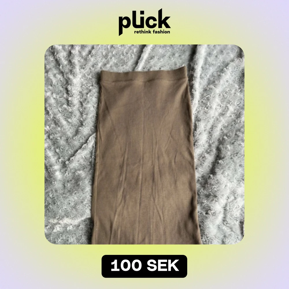 Ribbad kjol i beige färg. Längd kommer till precis under knäna. Kontakta för mer information/fler bilder. Kan postas men köpare står för frakten, kan mötas upp i malmö