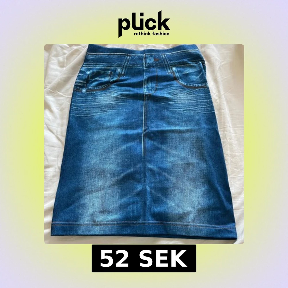 Säljer en ny blå kjol med coolt jeansmönster från Slip-in Skirt. Kjolen är rak i modellen och har tryckta detaljer som fickor och sömmar. Tillverkad i mjuk polyester med lite stretch för extra komfort. Perfekt för dig som gillar jeanslooken men vill ha något bekvämare.