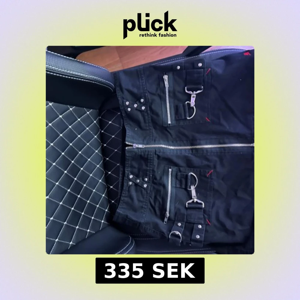 Svart kjol med flera dragkedjor och spännen. Kjolen edgy design med nitar och detaljer i silver. •Gothic