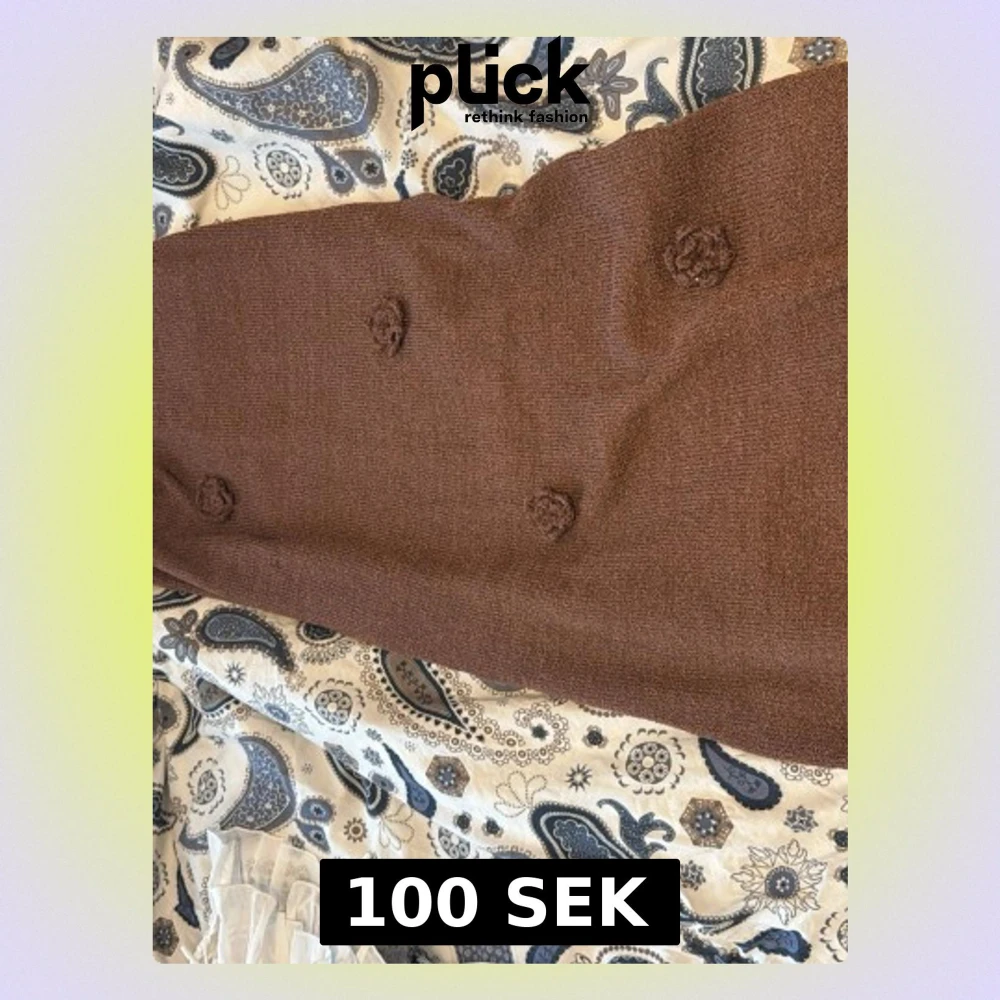 Mysig brun stickad klänning med dekorativa stickade blommor. Kjolen har en rak passform och är perfekt för dig som gillar en avslappnad men ändå stilren look.