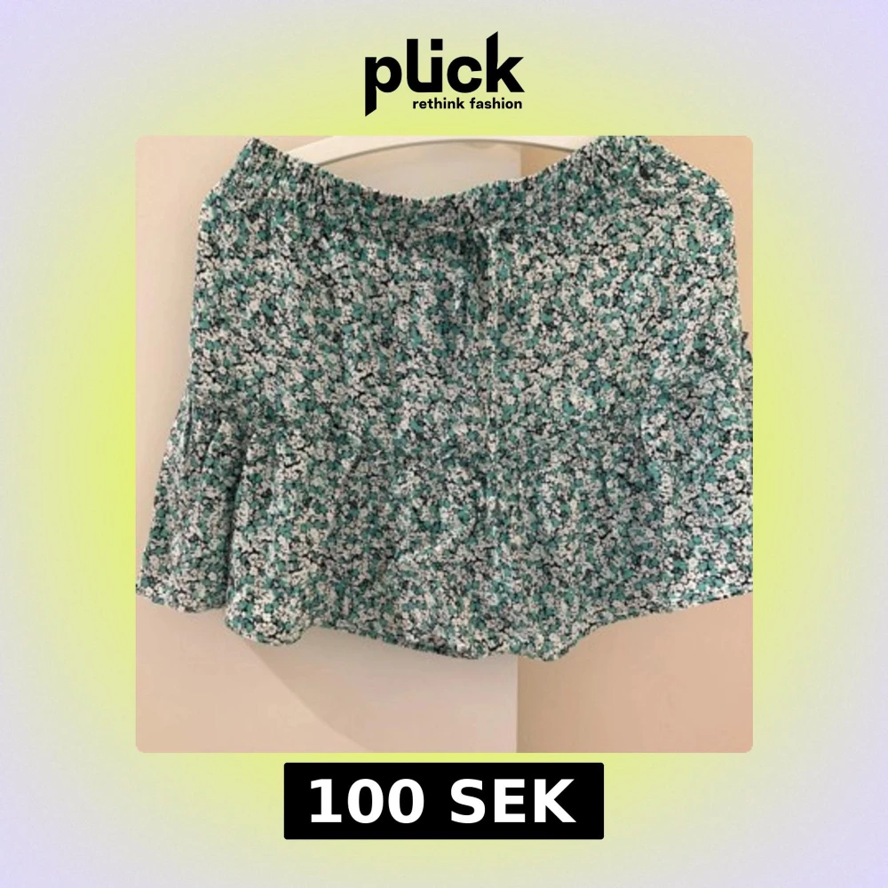 Supersöt kortkjol med blommigt mönster i turkos, svart och vitt. Kjolen har volangkant och en liten knytning i midjan. Perfekt för dig som gillar en lätt och flowy stil till sommaren.