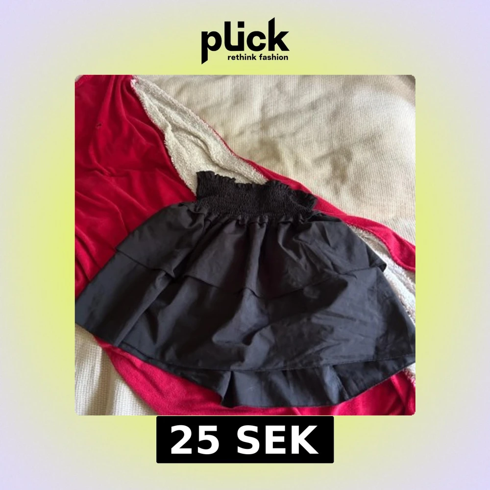 Supersöt svart kortkjol från Romwe i storlek M. Kjolen har bred smock i midjan och två lager volanger som ger en riktigt snygg och lekfull look. Perfekt att matcha med en croppad topp eller hoodie för en chill vibe.
