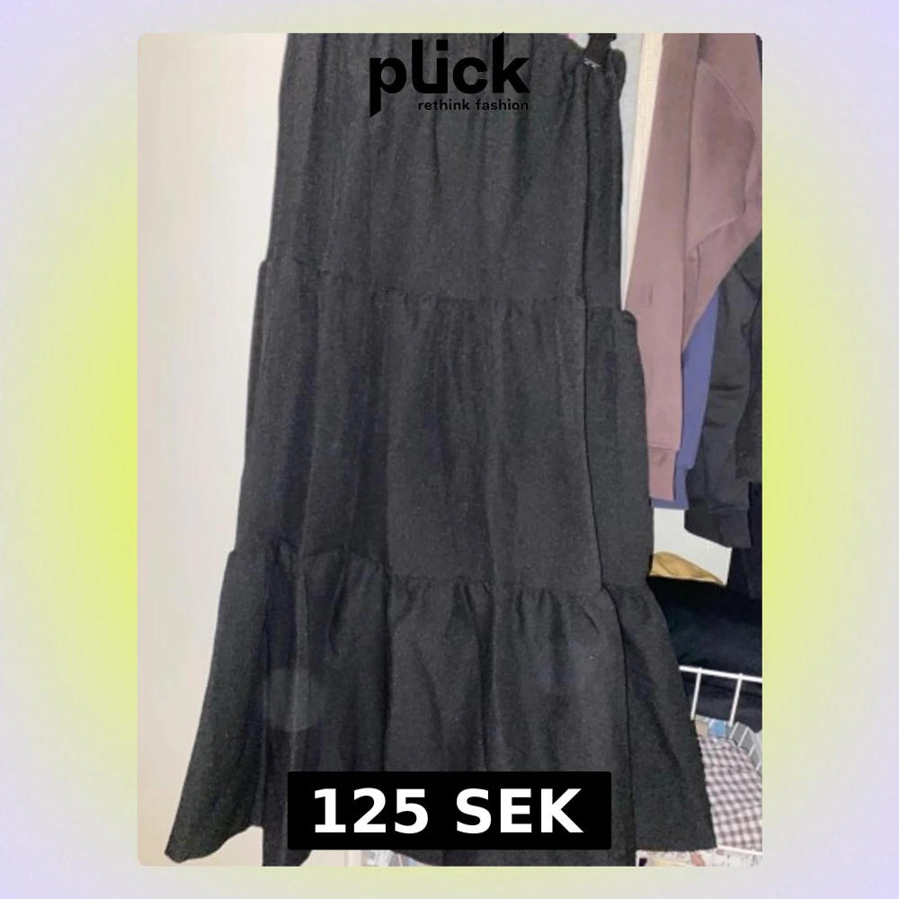 Säljer en svart långkjol med volanger och resår i midjan. Kjolen har en luftig och flowy passform som ger en avslappnad vibe. Perfekt att styla med en crop top eller stickad tröja för en trendig look. Aldrig använt och helt ny!