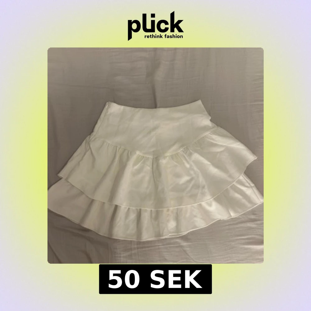 Snygg vit kortkjol med volanger, har dragkedja på sidan.