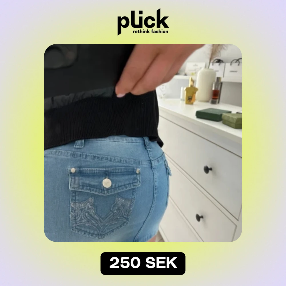 Jeanskjol med glittriga fickor lågmidjad. Aldrig använd