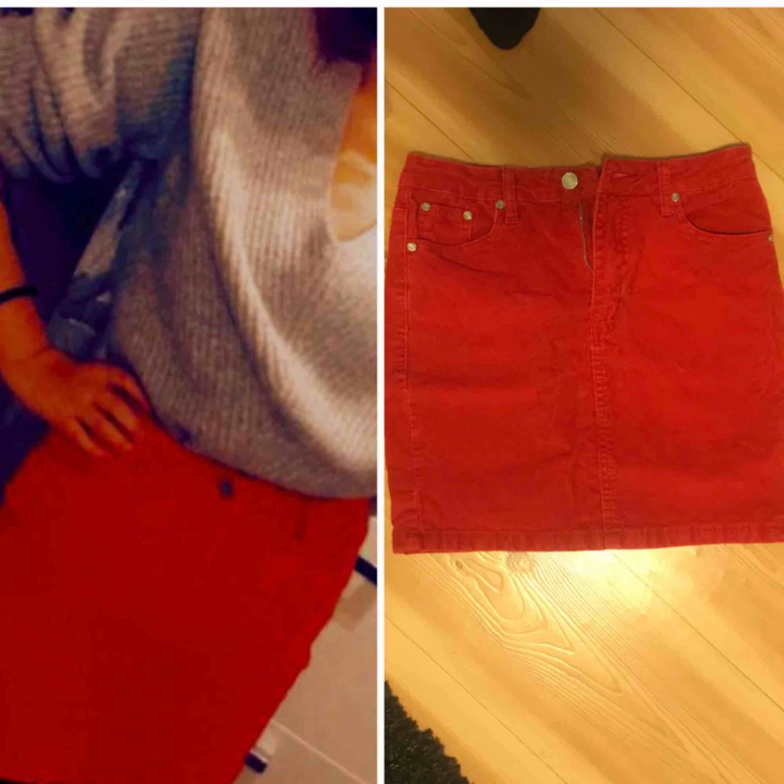 Röd manchester-kjol med fickor!😍 Medel-hög midja. Endast använd till jul. Från na-kd, storlek 38. Inte stretchig!