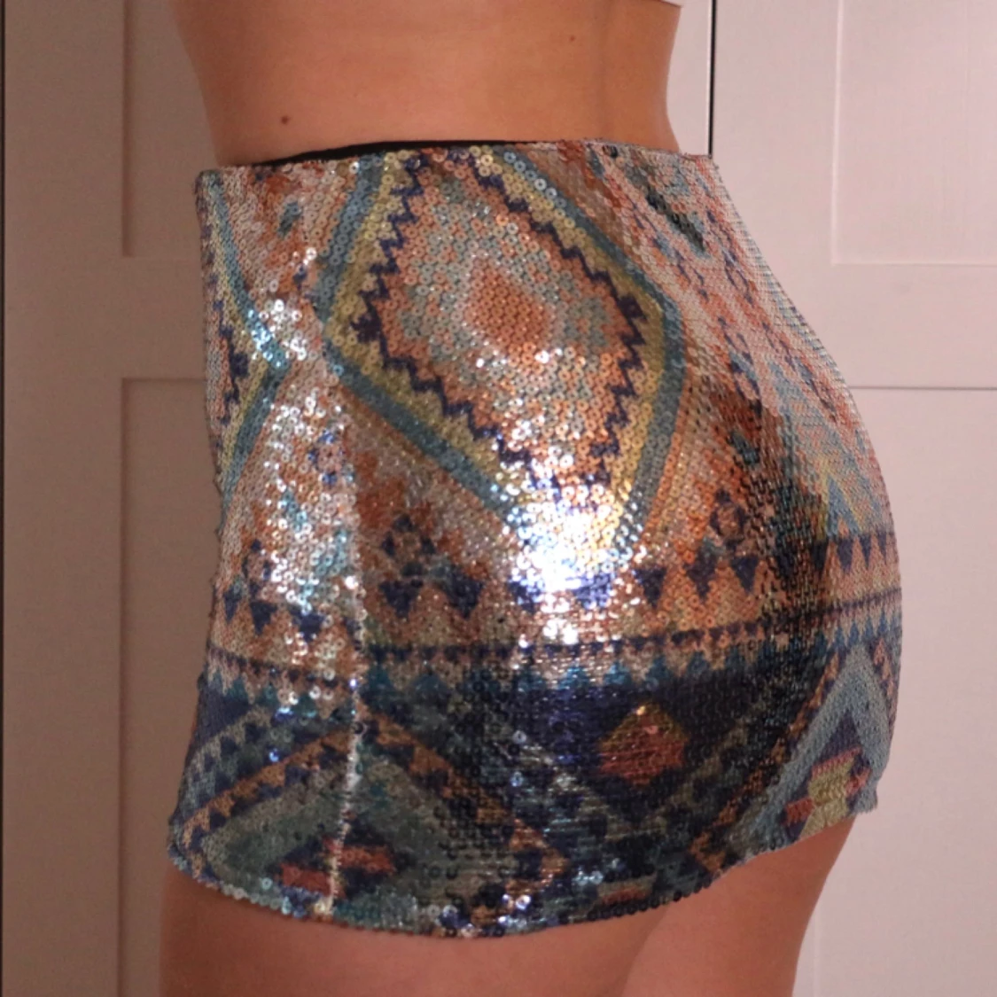 Paljettkjol i pastellfärger! Oanvänd, har bara legat i min garderob. Mjukt svart material på insidan. Kan mötas i Stockholm, annars står köparen för eventuell frakt.