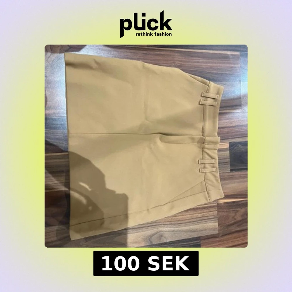 Snygg beige kortkjol med minimalistisk design och dubbla bälteshällor i midjan. Kjolen har en rak passform och är tillverkad i ett slätt tyg som ger en clean och stilren look. Perfekt för dig som gillar enkel och trendig stil.
