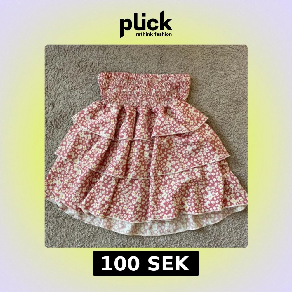 Supersöt kort klänning med rosa botten och små vita blommor. Smockad överdel och flera lager volanger ger en fluffig och lekfull look. Perfekt för sommarens alla tillfällen och ger riktiga good vibes.