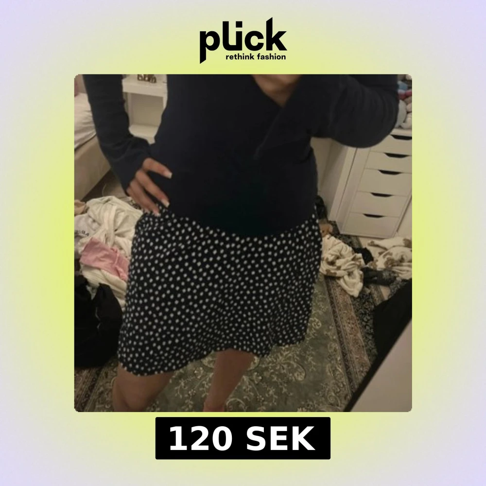 Supersöt mörkblå kortkjol med vita prickar. Kjolen har en lätt utställd form och är perfekt för dig som gillar en lekfull och trendig stil. Materialet känns mjukt och följsamt mot kroppen. Passar perfekt till en enkel topp eller hoodie.