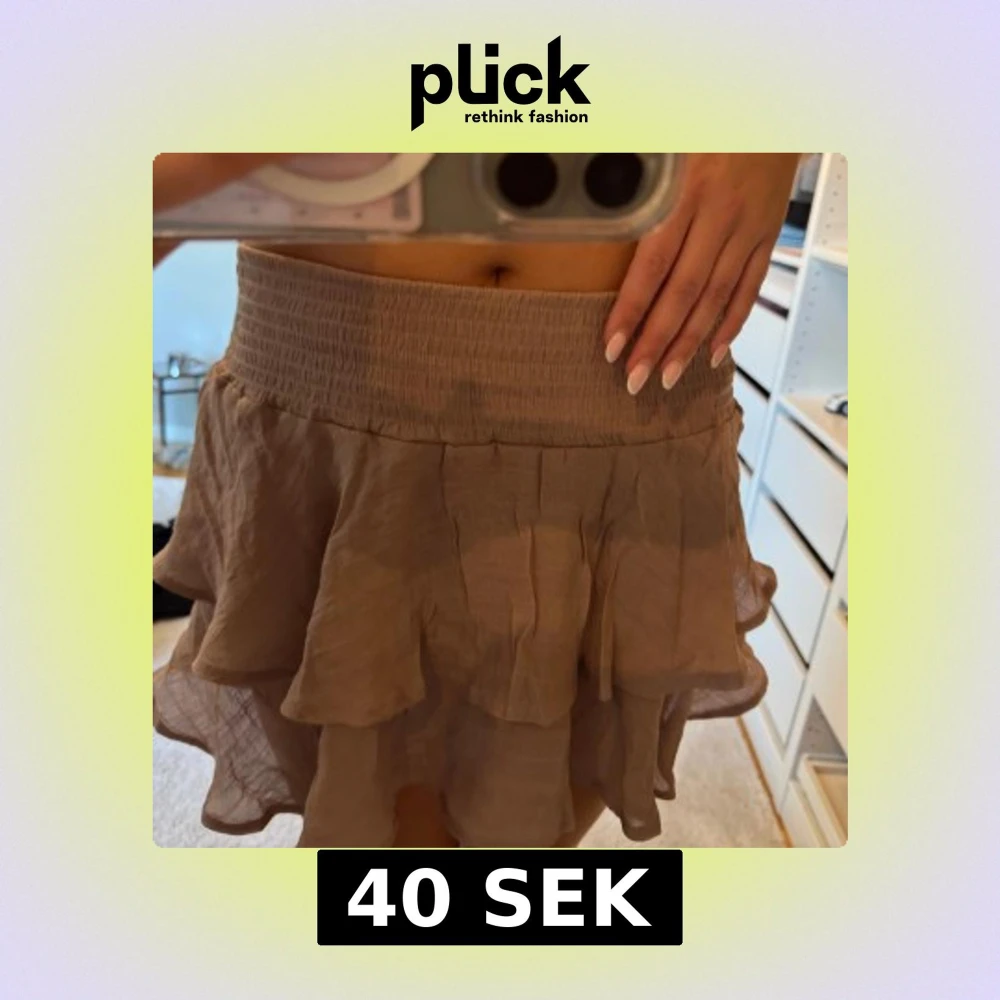 Supersöt beige kortkjol med volanger och bred resår i midjan.
