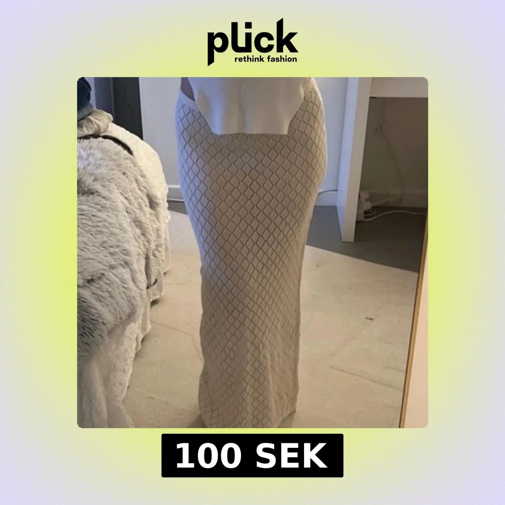 Snygg vit långkjol med ett diskret rutigt mönster. Kjolen har en tight passform som framhäver figuren. Perfekt för en stilren look.