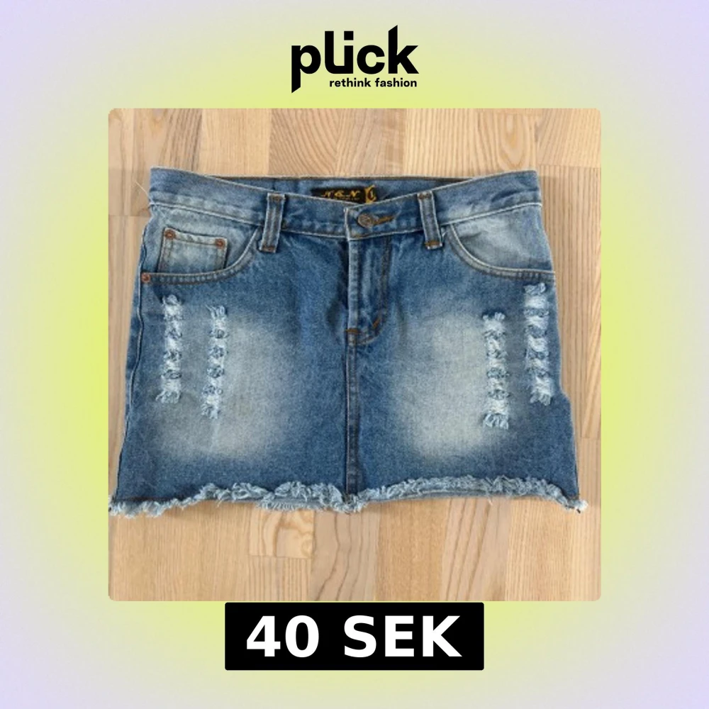 Snygg blå jeanskjol från M&N Jeans med slitna detaljer framtill och baktill. Kjolen har fransig nederkant, klassiska fickor och bälteshällor. Använd endast ett fåtal gånger.