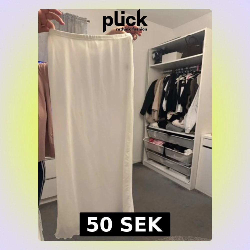 Säljer en stilren vit långkjol med rak passform och lätt glansig yta.