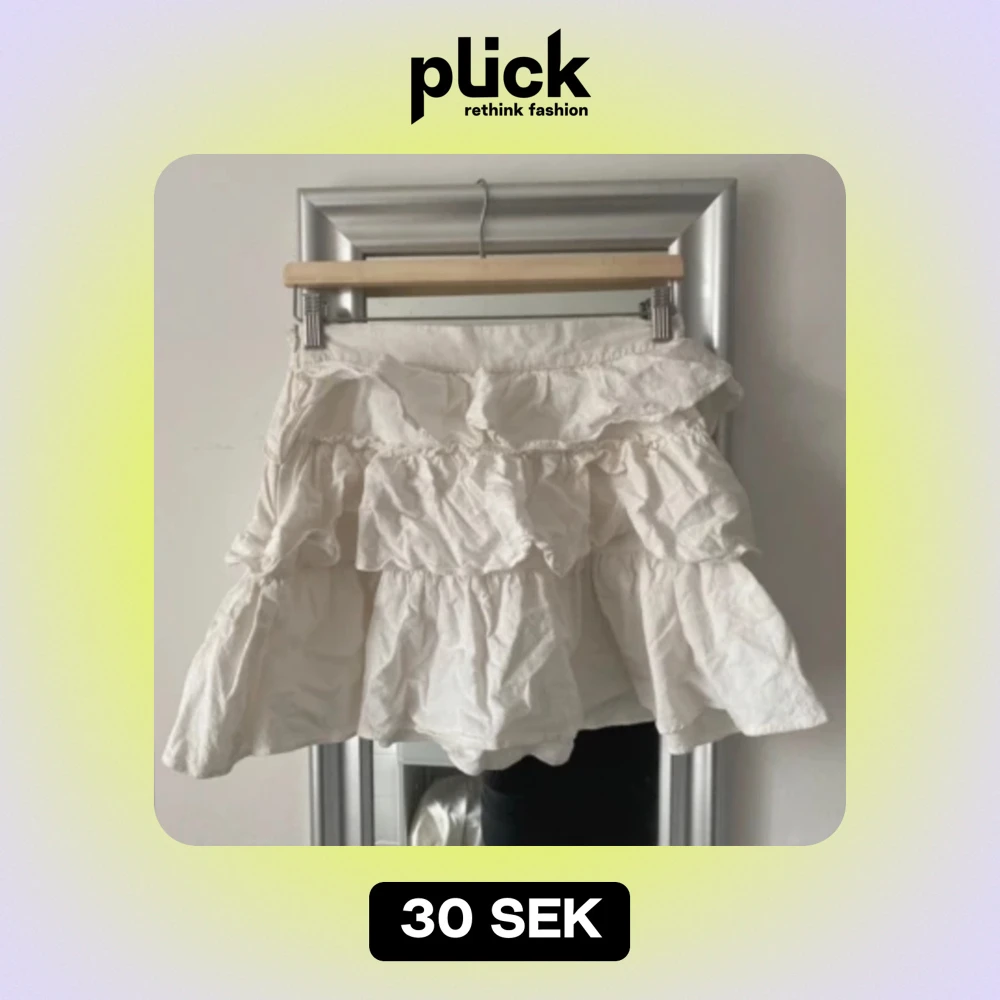 Vit volangkjol i 100% cotton, skrynklig på bilden men det går ju såklart bara att stryka bort, fint skick 🤍 har en dragkedja på sidan