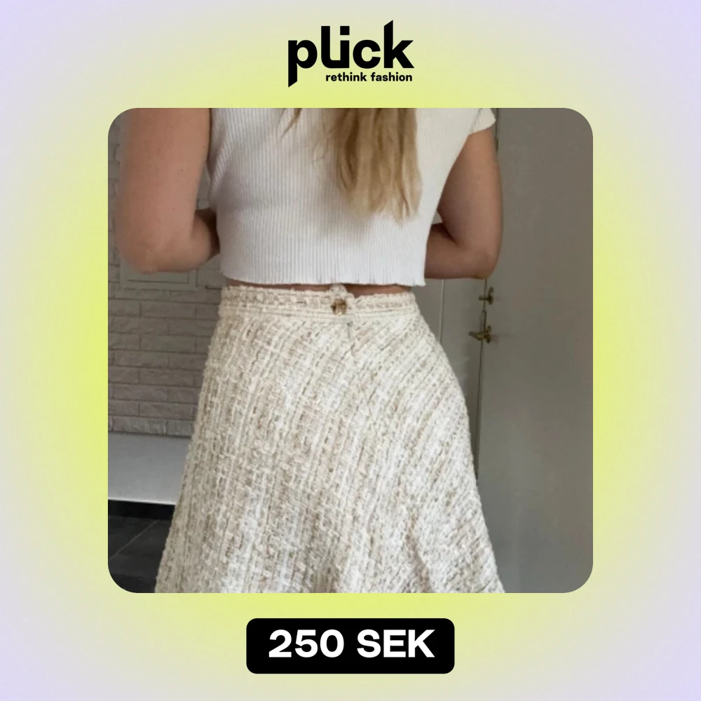 Tweed kjol från Veronica Virta. Fodrad med sidentyg. Guldknapp och dragkedja bak.