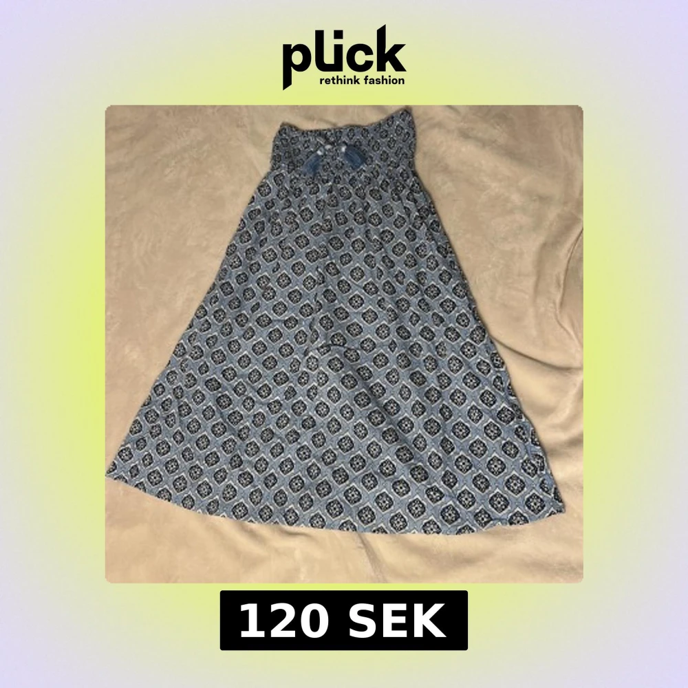 Säljer en extremt fin blå lågmidjad kjol med coolt mönster. Har fin rosett detalj med pärlor och stretchig midja. Ifrån Gina tricot I strl 146/152 vilket motsvarar en XXS. Perfekt för svenska sommardagar eller utomlandsresor. Aldrig använd.