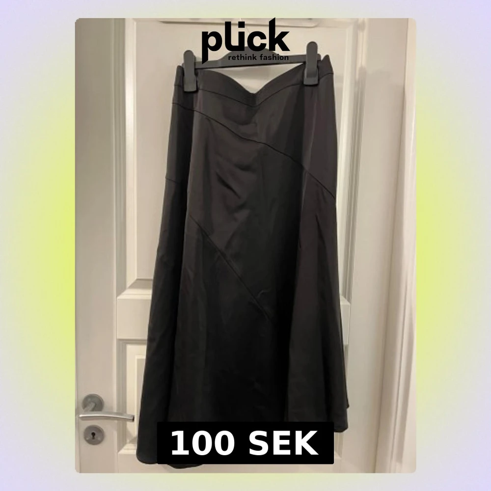Säljer en svart långkjol från Vero Moda i storlek M. Kjolen har en snygg, svepande A-linjeform och bred resår i midjan för skön passform. Materialet är mjukt och har en lätt glansig yta med diskreta sömdetaljer som ger extra stil.