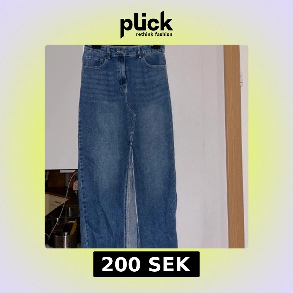 Snygg lång jeanskjol i klassisk blå denim med hög midja, slits framtill och rå, fransig kant nertill. Kjolen har femficksmodell och stängs med knapp och dragkedja. Perfekt för en chill och trendig look.