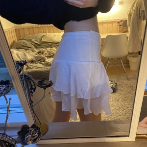 Supersöt vit volangkjol! Lappen är bortklippt men skulle gissa att det är storlek S🤍